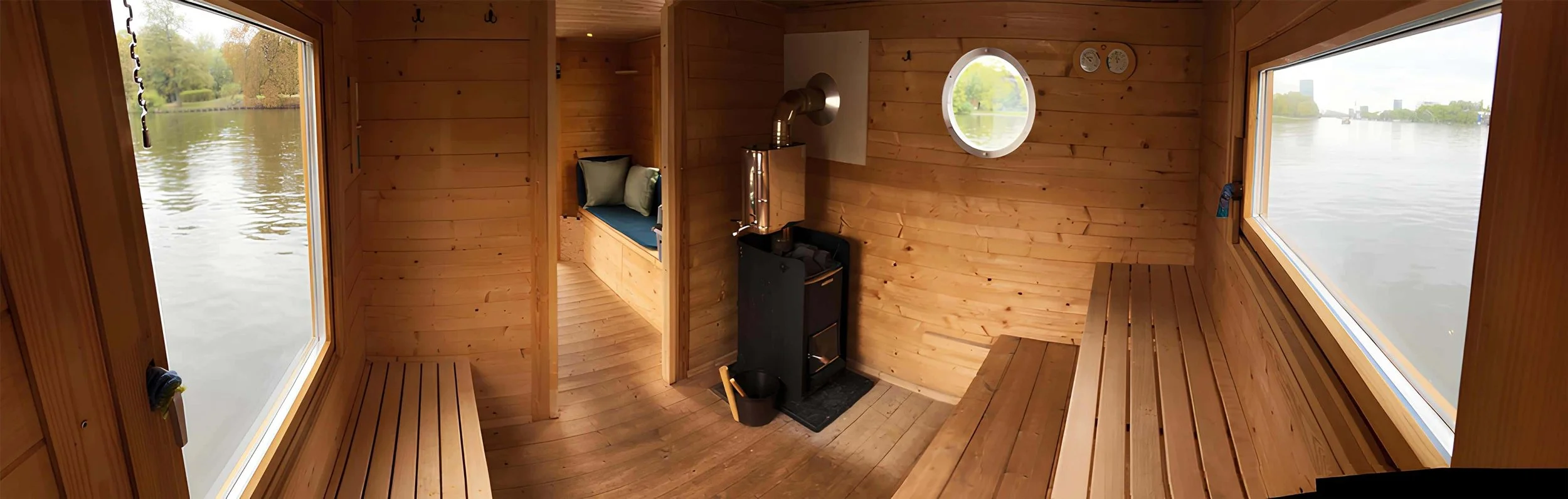 Lasst den Großstadttrubel hinter euch und genießt wohltuende Wärme in unserer holzbefeuerten Sauna. Durch das große Panoramafenster blickt ihr auf die Berliner Skyline, während der Duft aromatischer Aufgüsse den Raum erfüllt. Die sanften Wellen der Spree und das leise Knistern des Ofens schaffen eine Atmosphäre, die wie gemacht ist für intime Momente zu zweit – natürlich romantisch. Ob Jahrestag, Date-Night oder einfach eine kleine Flucht aus dem Alltag: Diese Pärchen Aktivität verbindet Wellness, Natur und Großstadtflair zu einem besonderen Erlebnis an einem privaten Rückzugsort auf dem Wasser – ungestört Zeit zu zweit genießen!